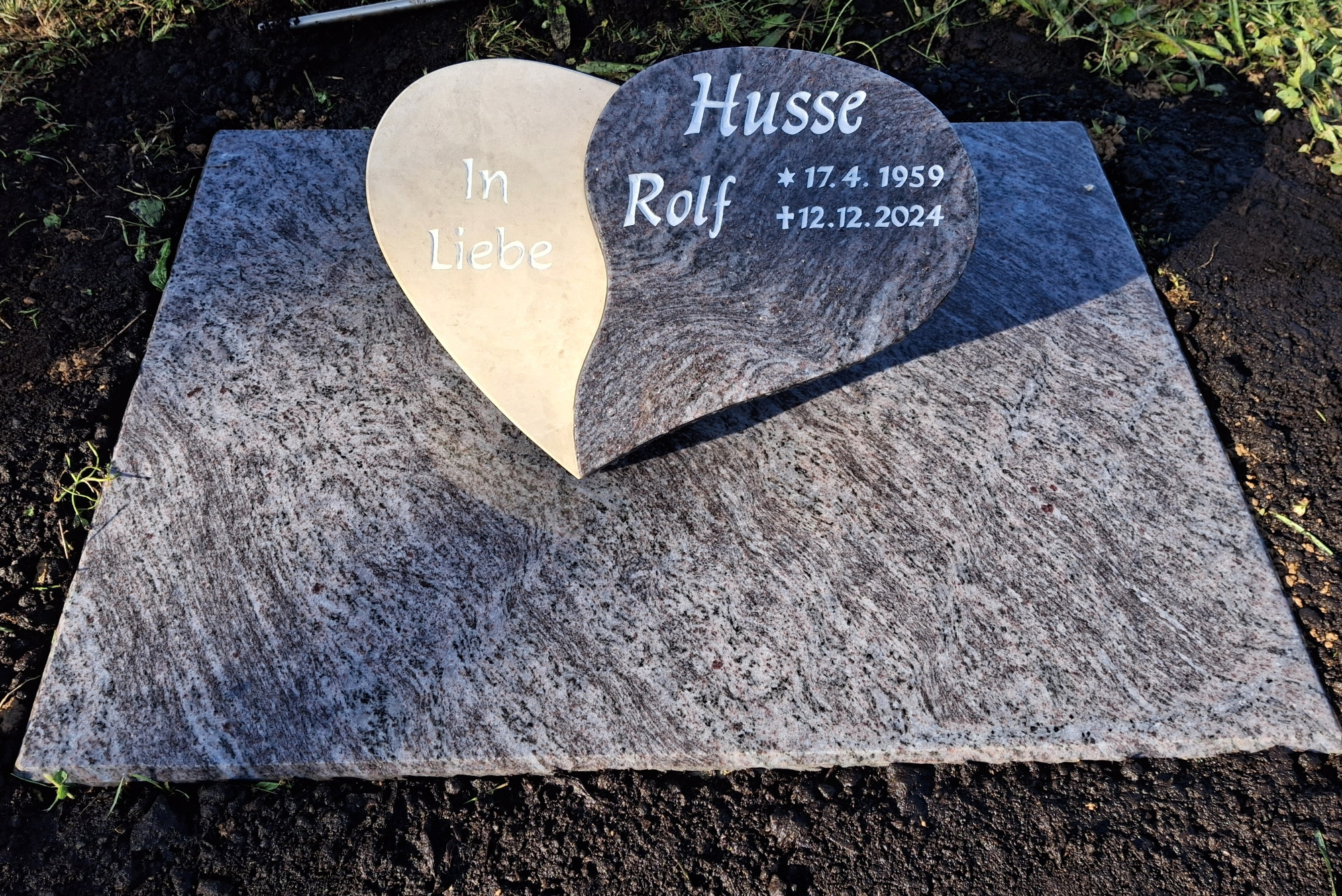 Da es bei Rasenplatten mit vertieft gestrahlten Schriften immer wieder zu Verunreinigungen und zu frühzeitiger Abnutzung der Schriftfarbe kommt, bieten wir Ihnen neu das Auffüllen der Schrift mit 2K Epoxidharz an. Dabei wird die vertieft gestrahlte Schrift mit einem eingefärbten und verwitterungsfreien 2K Kleber aufgefüllt. Somit ist die Oberfläche der Rasenplatte eben und Wasser und Dreck können direkt abfließen.